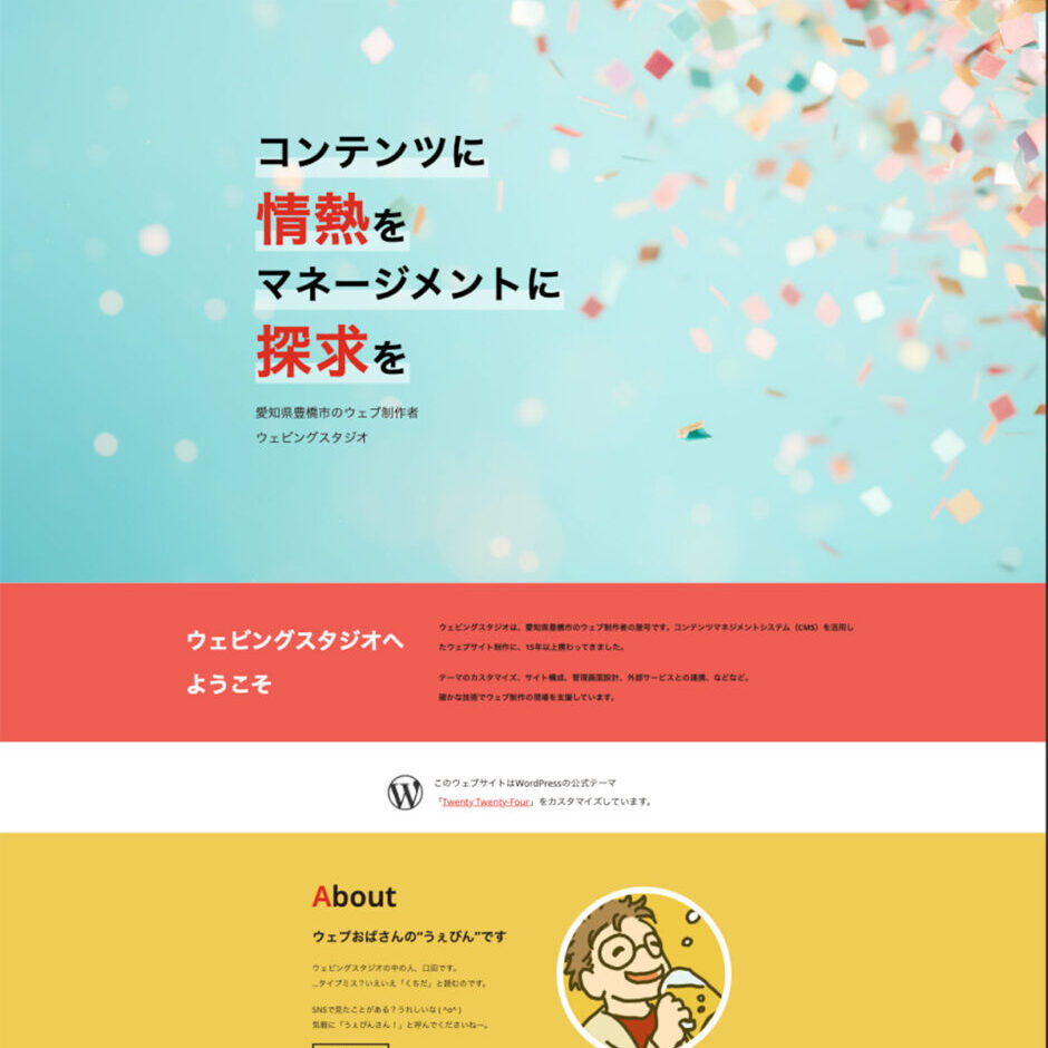 私はウェブ制作の分野の中でも、CMSテーマの作成とサイト構築を専門としています。その業務は一般のウェブデザイナーよりも多岐にわたります。