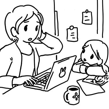 子育てをしながら働くウェブデザイナー、制作会社の営業兼ディレクター、リモートワークをするフロントエンドエンジニアの三人を描きました。お母さんを見上げる女の子がかわいらしく描けました。おやつあげたいです。