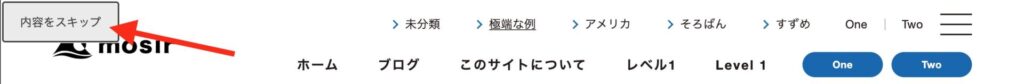 公式クラシックテーマは、ヘッダを飛ばすスキップリンクがページ先頭に必須です。タブキーを押すと最初に出てくるはずです。これはブロックテーマを参照して実装しています。